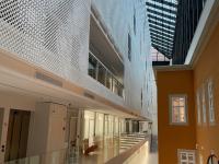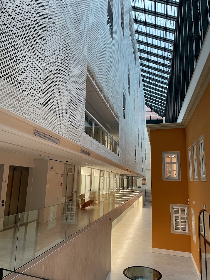 A régi pompájában felújított épület belső udvarán pedig egy modern 8 szintes irodaház került megépítésre.
